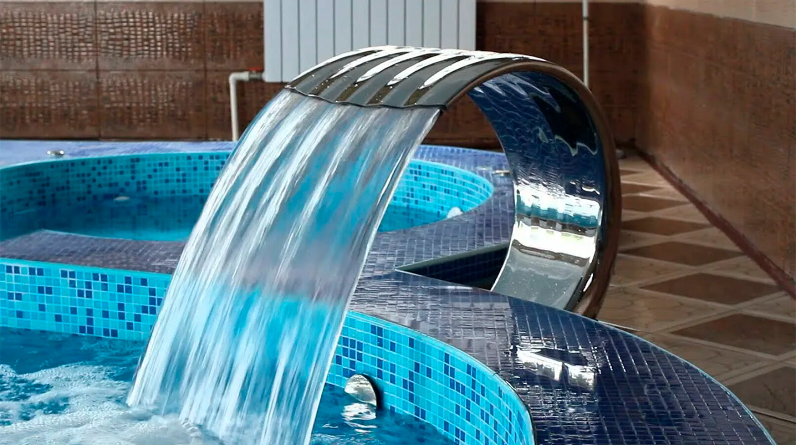Водопад один из самых востребованных аттракционов для бассейна. Покупая водопад в бассейн, заказчик никогда не жалеет о выборе, сделанном в пользу данного аттракциона. Водопад для бассейна подходит для установки в частных и общественных искусственных водоемах. Благодаря возможности регулировок интенсивности водяного потока можно с легкостью настроить под потребности любого пользователя. Падающая вода в область щей и плеч работает по принципу гидромассажа и оказывает положительное терапевтическое действие на организм человека.